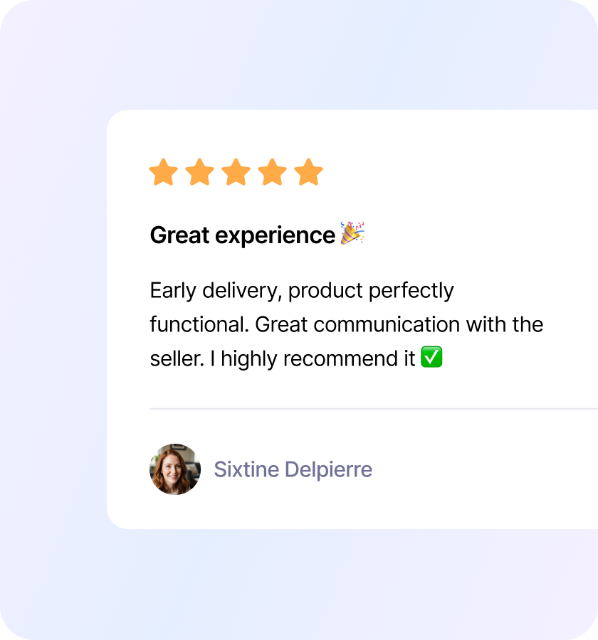 - Verified reviews & ratings: give your customers a voice. The native review system allows buyers to rate products AND sellers.